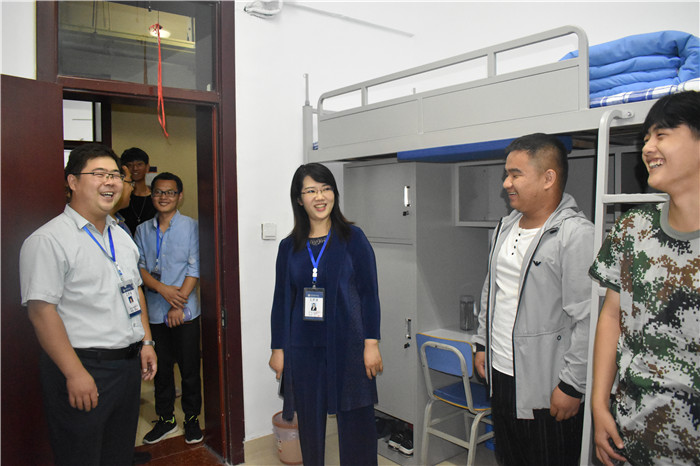 随着开学季的到来,英国be365官网迎来了2020级新生的开学报到。为了解员工入校后的生活适应情况,9月24日晚,公司副经理魏丰君,经理助理刘占凯、马安会,科长王强以及2020级辅导员老师共同走访了新生的寝室,关怀看望员工。