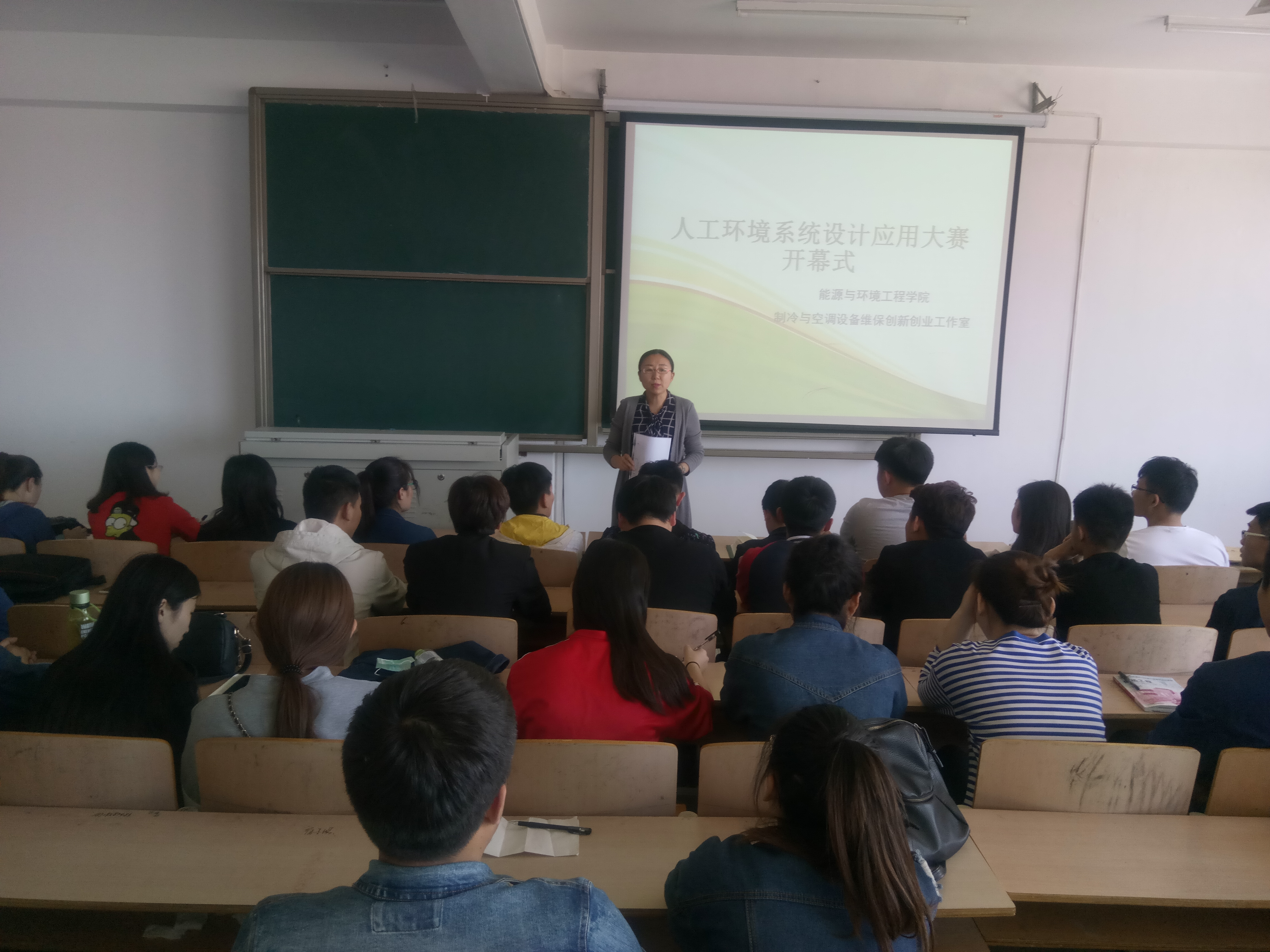2017年4月18日由能源与环境工程公司主办,制冷与空调设备维保创新创业工作室承办的"人工环境系统设计应用大赛”开幕式在英国be365官网10#楼602隆重举行。制冷与空调设备维保创新创业工作室专业指导教师刘春花老师主持了开幕式。