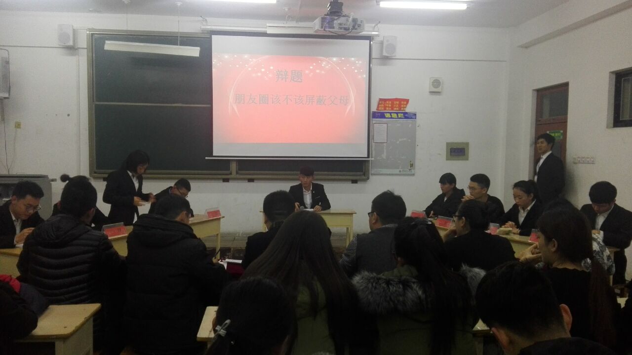 此次决赛辩题为“朋友圈应不应该屏蔽父母”。经过前期的初赛、复赛,决赛的烽火由14、15本科建环代表队与15高职制冷代表队点燃。