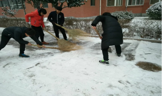 2月21日晚,德州迎来了2017年的第一场瑞雪,雪花纷纷扬扬地从天空中飘落下来,迈着轻盈的步子来到了华宇校园,大雪为华宇装扮一片银装素裹的天地的同时,也使得校园马路上堆满厚厚的积雪,给同学们的出行带来极大的不便。公司紧急召开员工会议,下达扫雪任务。