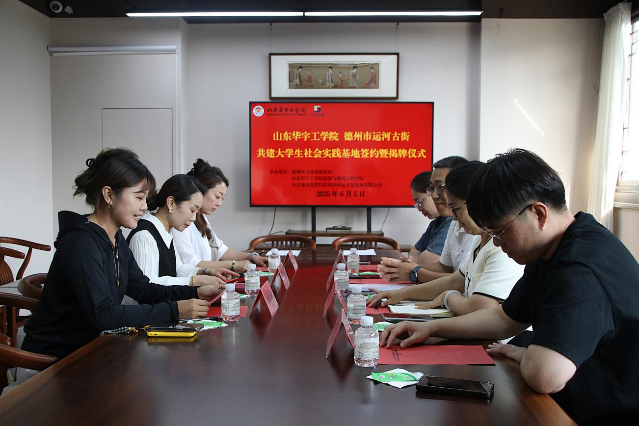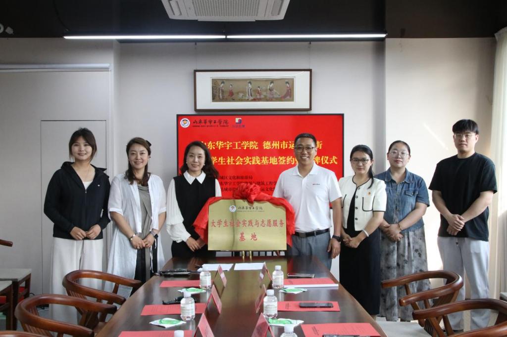 随后,德州祥运文化发展有限公司总经理周玮与公司团总支书记任秋燕签订合作协议,张璐局长与刘占凯书记共同为实践基地揭牌。仪式后,全体人员合影留念并参观运河古街,师生实地感受非遗项目与传统技艺的历史韵味。