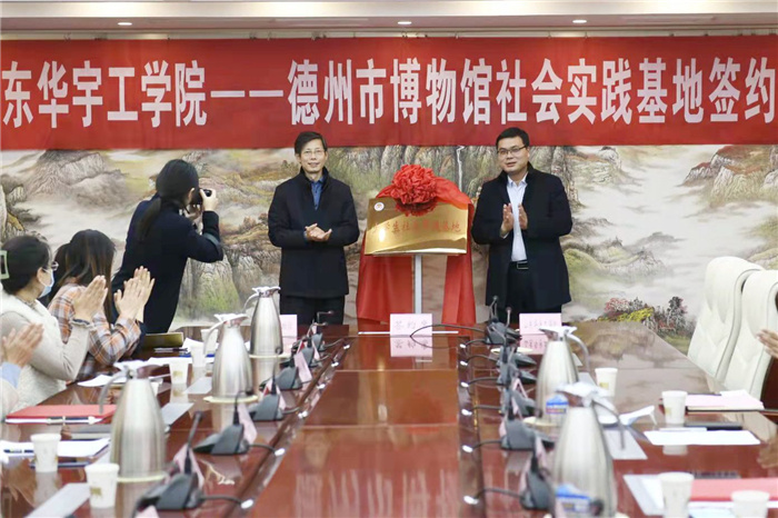 在与会人员的共同见证下,德州市博物馆馆长张嵘、公司公司党总支书记刘占凯代表双方签订《共建老员工社会实践基地协议书》,俞鲁海副局长和侯建昌处长为双方共建社会实践基地揭牌。