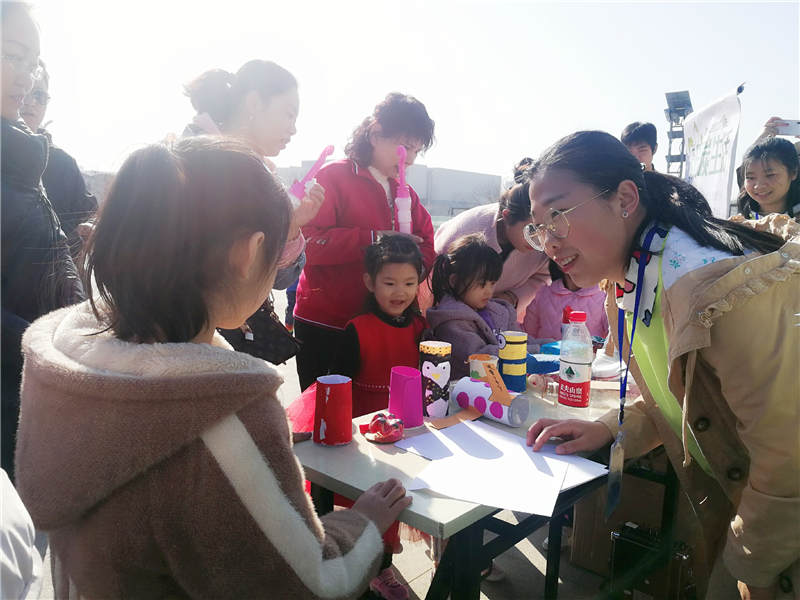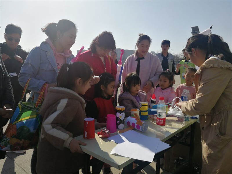 环保宣传环节,宣传小组以宣讲的形式向市民及游客宣传普及环保知识和生活中的节能小窍门。同时,宣传组的成员在现场展示了如何变废为宝,将可回收的一次性纸杯、矿泉水瓶等物品重新再利用,制作成各式各样的小工艺品,也鼓励现场的小朋友参与进来,亲自动手做环保小作品,以此希望通过“小手拉大手”带动整个家庭在日常生活中保护环境,倡导绿色生活。