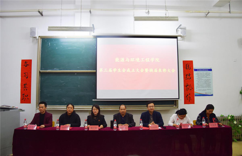 2018年11月1日晚,能源与环境工程公司成功召开第三届员工会成立大会暨换届表彰大会。经理张风合、教学经理魏丰君、学管经理闫克信、实验实训中心主任张妍妍、公司团总支书记兼学管科长赵立艳、公司团委老师高守朋、学管干事任秋燕以及第二届、第三届全体员工会成员出席了本次大会。