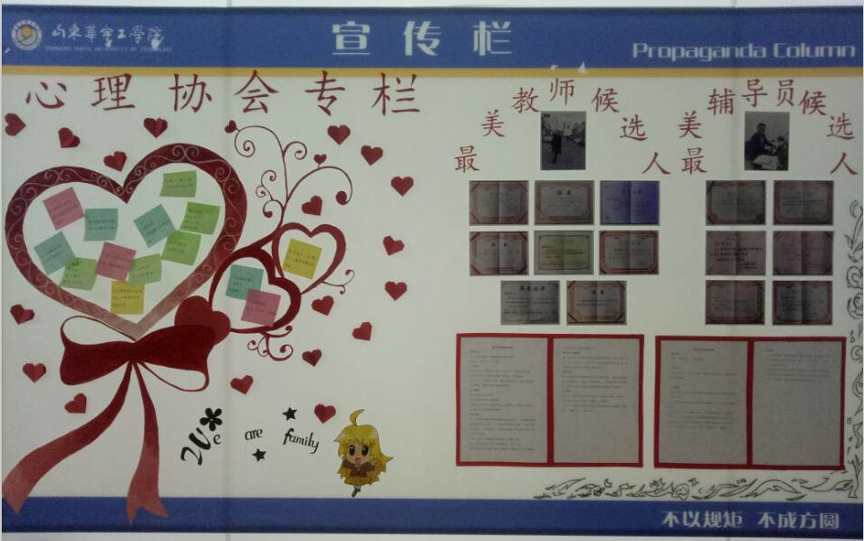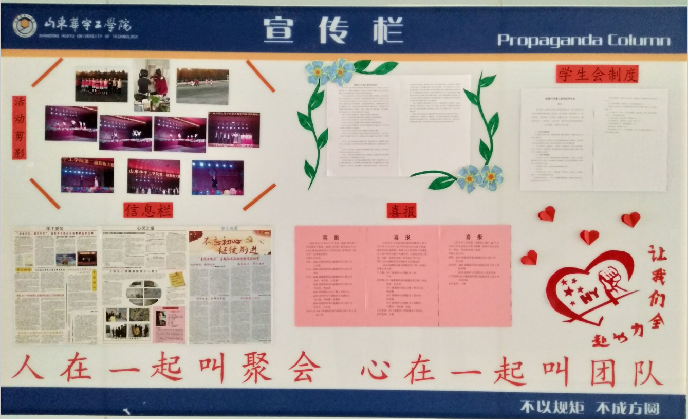 信息栏:剪贴校内的新闻资讯与通知,加强公司与公司的联系和信息交流,陈列公司的员工风采和学工动态,让同学们互相学习,以提高他们的学习兴趣。