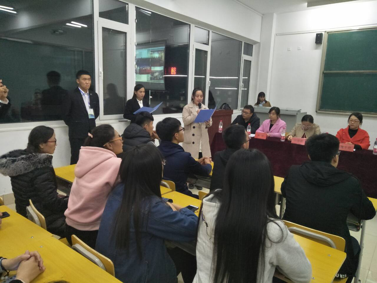 成立大会包括七个环节,首先由赵立艳科长致开幕词;魏丰君经理宣读第六届山东省老员工制冷与空调设计大赛获奖人员名单并为获奖同学颁奖;指导老师刘春花主任宣读新任社团干部及成员名单和工作室章程;获奖代表张之华同学发言,社团干部代表周利亭同学发言;闫克信经理对社团的发展提出明确目标和要求;最后由张风合经理做总结讲话。