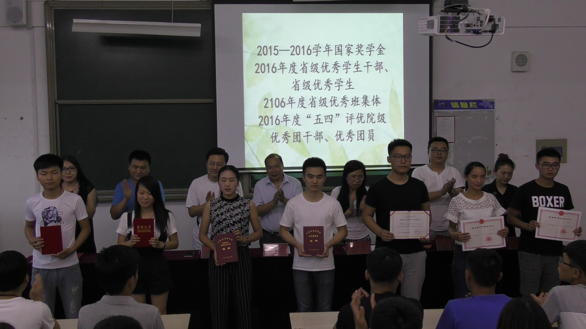 会议还对获得2015-2016学年国家奖学金,2016学年省级优秀员工干部、2016学年省级优秀员工、2016学年省级优秀班集体荣誉称号的先进集体和个人进行了颁奖。