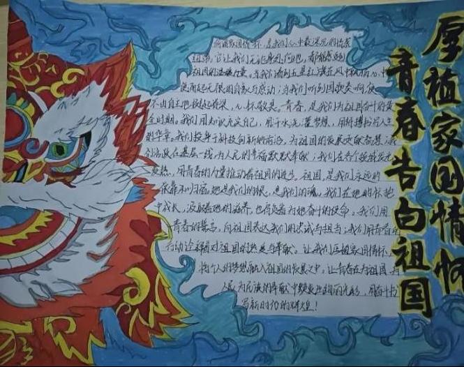 通过绘制黑板报与手抄报的形式展现同学们的文采与创意,激发青年员工对祖国与民族的深刻了解和热爱,增强员工的爱国情怀,在潜意识中接受爱国主义教育的熏陶,进一步激发同学们的责任感和使命感。