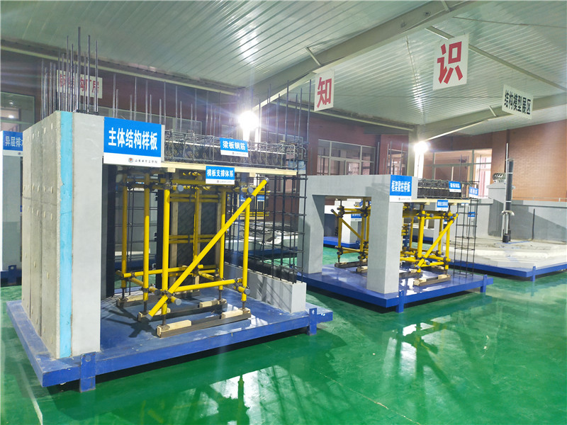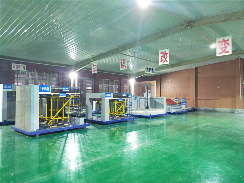 建筑技能实训中心主要配备有主体结构样板、框架梁柱样板、独立柱样板、平屋面样板、斜屋面样板、厨卫样板、楼梯样板、地下室结构样板等装配式建筑构件模型,服务于《土木工程施工》《房屋建筑学》《建筑结构》等课程。可完成房屋建筑模型制作、建筑施工图纸在建筑施工中的应用等项目。主要培养员工对建筑构造的认识、从施工图纸到生产实际转化的能力,为员工从事土木工程施工、工程管理、建筑设计等工作打下良好的基础。