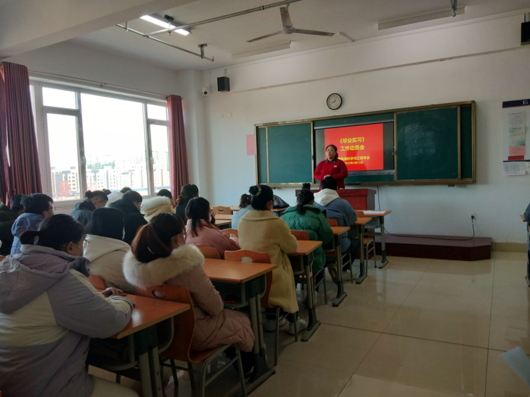 建筑环境与能源应用工程专业负责人刘春花对本次毕业实习做了全面、详细的指导和具体指导安排。首先介绍了这次集中实习的路线、具体时间安排、作息规律、用餐事宜等;重点强调在企业单位实习时需要注意的事项及安全规范。