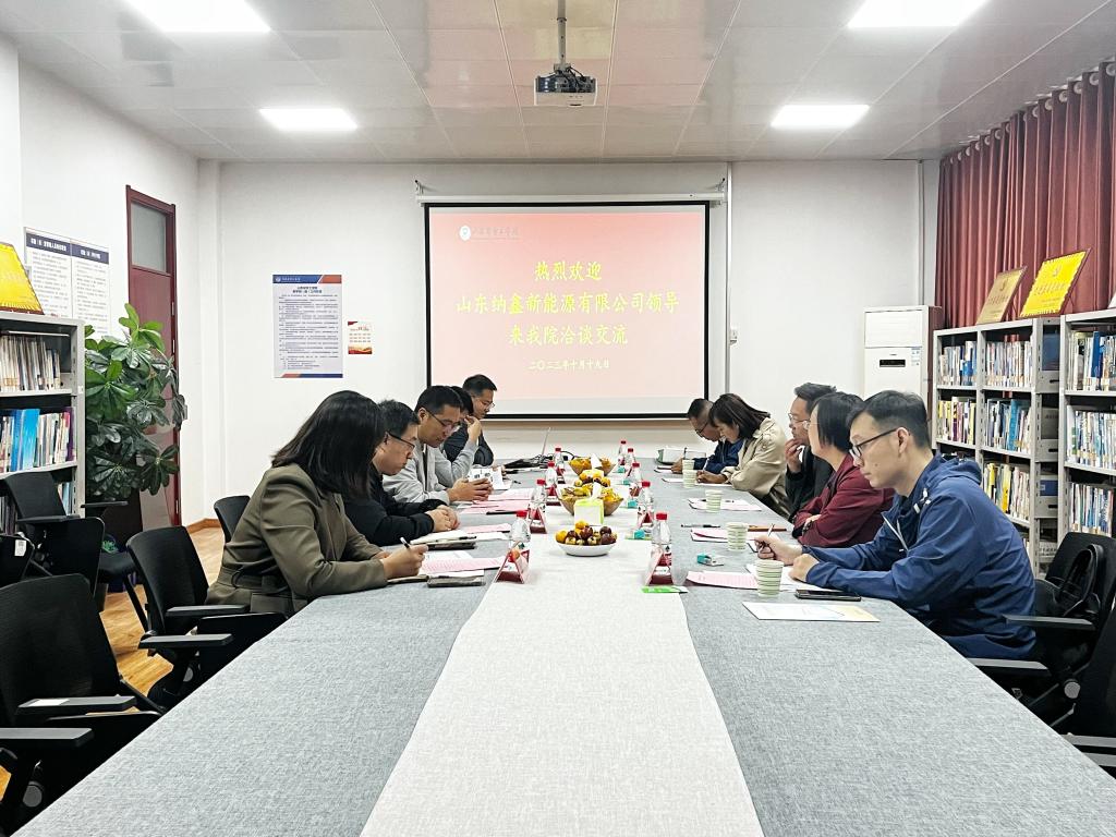 10月19日,山东纳鑫新能源有限公司副总经理花玉祥、销售总监王蕾、综合管理部部长曹颜坤一行在济宁团市委常委、组织部部长苏光余、德州团市委组织部部长杨延昭等单位同志的陪同下来公司交流座谈。公司党总支部书记、副经理刘占凯、新能源科学与工程教研室副主任王承志、建筑环境与能源应用工程教研室教授袁家普、能源与动力工程教研室副教授温雪莹参加会议。会议由公司办公室主任车建成主持。