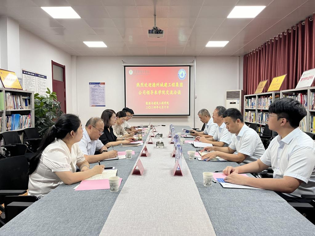 魏经理首先代表公司对郑总一行的到来表示热烈欢迎,并对公司及公司的规模概况、团队队伍建设、教学条件、人才培养、员工就业等方面进行了详细的介绍。德州城建工程集团有限公司副总经理郑长旺对公司的办学实力给予了高度评价,详细介绍了企业的发展历程和未来发展思路,并表达了合作的意愿,希望双方充分发挥各自优势,实现科研平台建设、技术创新等方面深度合作。