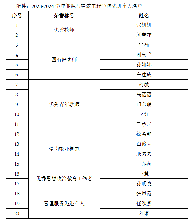 为激励风清气正、团结协作、积极向上的优秀团队,表彰履职尽责、勤勉敬业、积极进取的先进个人,按照《英国be365官网关于开展2023—2024学年先进集体和先进个人评选活动的通知》鲁华宇院政人字〔2024〕12号文件要求,经个人申报、各办公室推荐和公司评选工作小组评议后,现将先进个人名单公示如下。