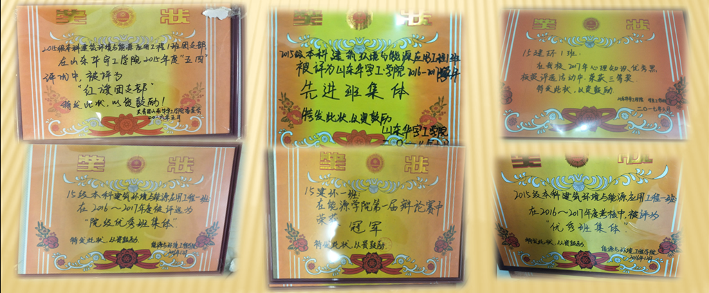 以年华作笔,以汗水为墨,从一张又一张白纸上挥洒出万千光彩,他们是在阳光下闪耀的班级——2015级建筑环境与能源应用工程一班。2015级建筑环境与能源应用工程1班共有29人。班级氛围和谐融洽、相亲相爱,不断进取,朝气蓬勃。其班级辅导员宋成立老师,硕士研究生在读,具有丰富的管理经验,工作期间连续三年被评为“校级先进工作者”。其班级导师相培老师——硕士研究生在读,工作经历丰富,知识渊博,多次获得省市级奖项。15建环一班所有同学积极参加各种文体活动,成绩斐然。全体成员达到《国家体育锻炼标准》。集体荣誉感强,努力为班级增光添彩,获奖比例高。连续三年蝉联“优秀班集体”“先进班集体”“红旗团支部”称号。两次团体冠军: 辩论赛冠军、第二届心理情景剧大赛冠军。在2016-2017年度考核中,被评为院“优秀班集体”和“冠军优秀班集体”。在党建方面,班级中有6人已通过党课考试,成为入党积极分子,占班级总人数的23%,其中1人已发展为预备党员。15建环一班有着和谐强大的班委团队,有着来自五湖四海的同学们,有着班级主题教育等思想建设,有着与时俱进的班风学风,有着员工会社团干部比例高、入党积极分子全院最高的员工,有着具备各项技能跟特长的人才。在过去一年多来,该班级取得多种成绩和荣誉,这既归功于班集体的共同努力,也归功于公司各级领导的关心爱护和精心培育。不忘初心,方得始终。2015级建环1班将继续把勤奋学习作为人生进步的重要阶梯,把奉献社会作为不懈追求的优良品德。