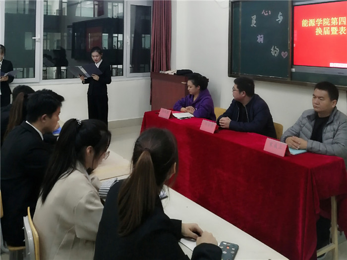 2019年11月4日晚,能源公司于21#611举行第四届心理协会换届暨表彰大会。会议由心协朋辈辅导部部长马文文主持,公司经理助理马安会、学管干事兼心理协会指导老师任秋燕以及辅导员老师宋成立出席了此次会议。
