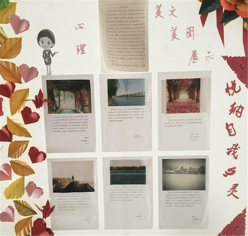 本期活动以“悦纳自我心灵,感悟健康生活”为主题,充分地诠释了老员工对美好生活的向往。在活动宣传上,公司心理协会各部门成员互相配合,明确分工,提前与各班的心理委员进行沟通,明确活动时间和展览地点。经过评选,公司择优推选出6幅美图作品和1篇心理美文,将作品张贴于心理宣传专栏进行展示。