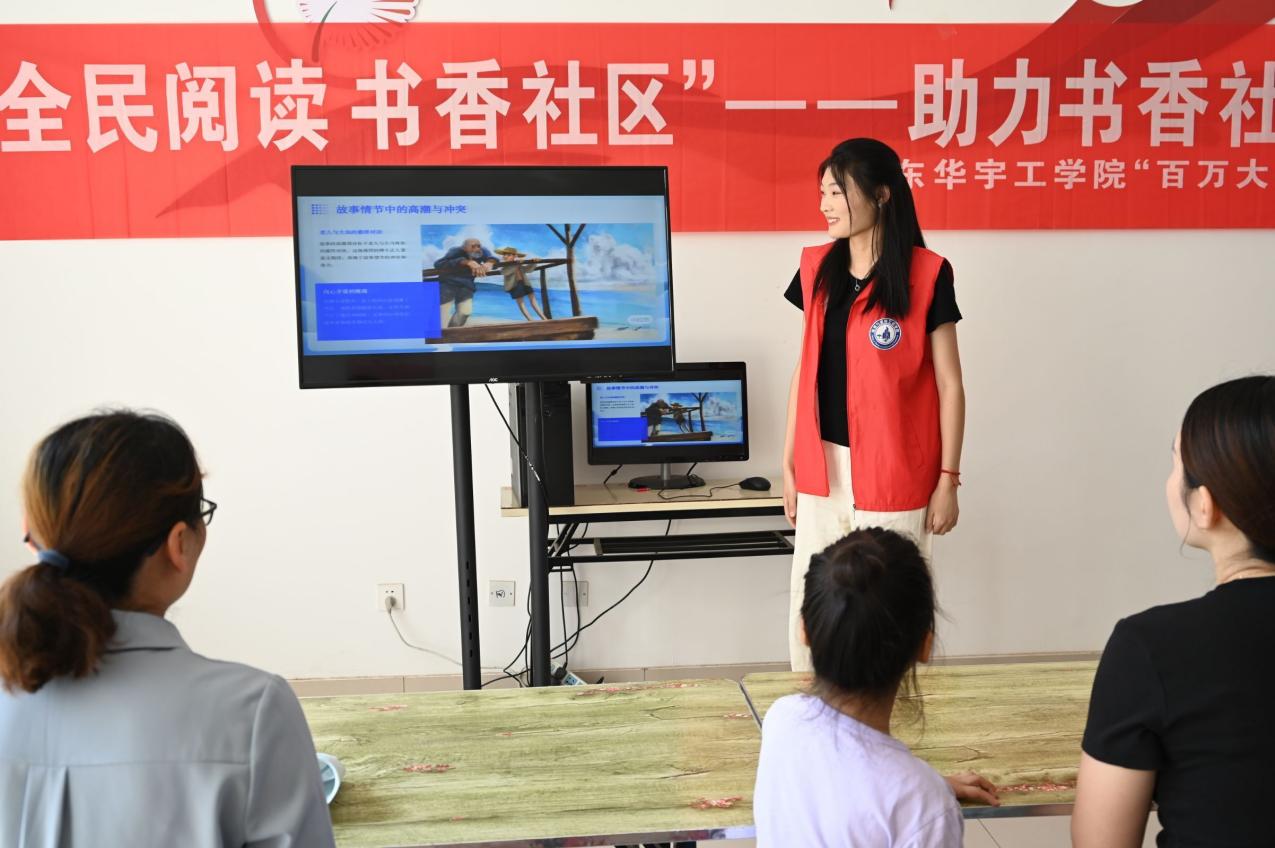 为大力弘扬全民读书新风尚,营造“读好书、好读书”的社区学习氛围,培养社区居民的阅读兴趣,2024年5月18日,英国be365官网团总支组织青年老员工志愿者走进嘉城社区,通过阅读、演讲、故事分享等多样化方式向居民介绍经典名著,助力书香社区建设。