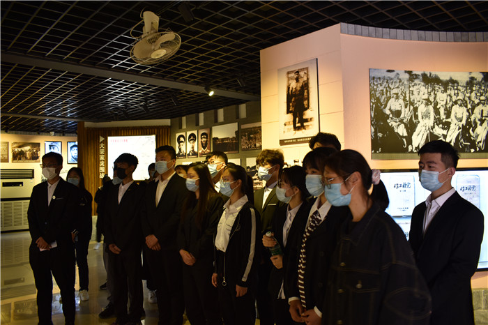 巍峨墓碑下,卓越功勋;青松绿柏中,英气凛然。同学们在革命烈士纪念馆下合影留念。时间定格的这一刻,凝聚的是能建学子崇尚英雄、关爱英雄的精神追求,展现的是能建学子捍卫英雄、学习英雄的价值选择。