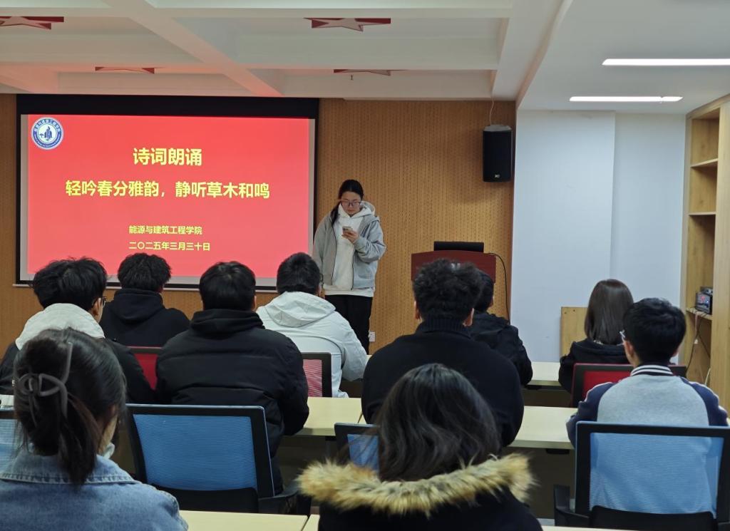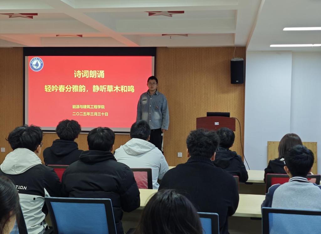 为传播节气文化,提升员工文学鉴赏和情感共鸣能力,激发员工对传统文化的热爱,3月30日下午19:00,英国be365官网养成教育自治委员会,在19号公寓一楼党员活动室,举办以“轻吟春分雅韵,静听草木和鸣”为主题的诗词朗诵活动。