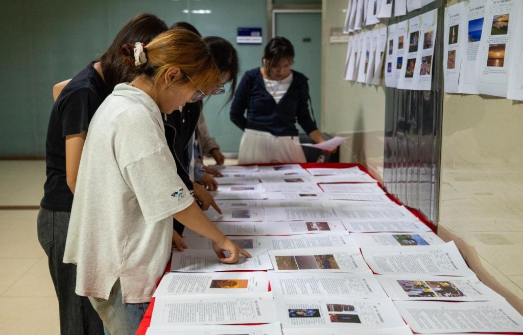 展览现场布置精致有序,展区划分清晰,刚开展便吸引了大批师生驻足观看。体育运动心得展区内,员工们用文字与运动影像记录暑期锻炼历程:有同学分享坚持骑行环岛的挑战与成就感,也有同学记录篮球集训中从“替补”到“主力”的蜕变,字里行间满是对运动的热爱;感恩父母一件事展区格外暖心,家务记录视频、亲子合照搭配文字讲述,还原了员工帮父母收拾家务、筹备家庭聚餐等温情场景;最美瞬间展区里,山间徒步时的日出、志愿活动时的笑脸等,定格了暑期生活的精彩与青春的活力;读书笔记展区中,从专业书籍的深度解读到经典名著的感悟随笔,字迹工整的笔记与图文批注,展现了员工们暑期深耕知识的专注;社会调查展区则汇聚了员工们的实践成果,每份报告都包含详实的数据与独到的思考,尽显新时代青年的社会责任感。