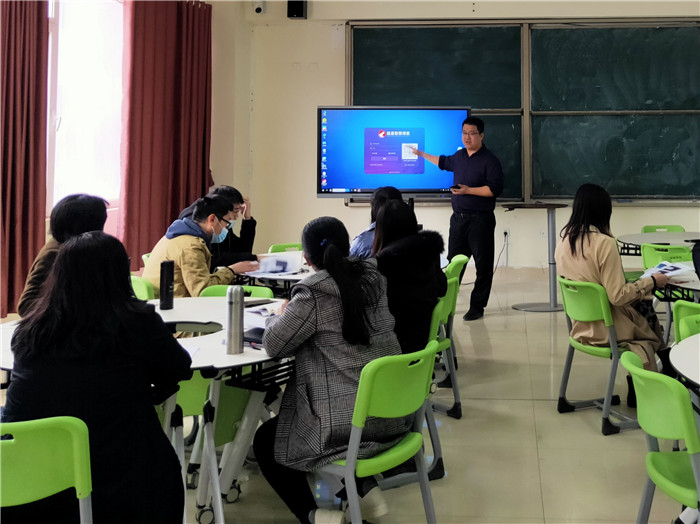 伴随着信息化时代的来临和新兴技术的不断冲击,传统的课堂教学将面临着巨大的挑战,也必将推进学习方式的变革和学习主体的自我觉醒。为使教师尽快地熟练掌握智慧课堂的使用技能,让智慧课堂尽快服务于课堂教学,提升课堂教学效率,公司邀请智慧教室管理中心刘洪瑞科长,对公司教师进行智慧课堂教学使用专项培训。