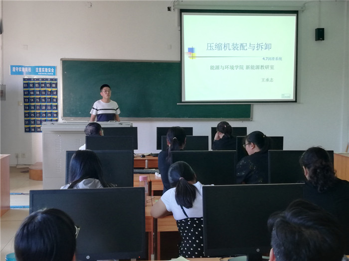 本次培训活动,公开示范课、说课培训由郭仁东教授、刘春花老师、王承志老师示范讲授,三位老师都能积极认真的准备,很好地发挥了教学引领和示范作用。郭教授采用板书形式讲授《流体力学》课程液体静压力内容,板书工整,布局合理,并详细示范了课堂重难点知识的解决方法,严谨又不失幽默;刘老师采用多媒体授课方式讲授《空调技术》课程夏季送风状态和送风量的确定内容,课件纲目清晰,图文并茂,板书与课件衔接紧密,理论与工程实例结合;王老师说课课程《压缩机装配与拆卸》中润滑系统内容,思路清晰,分析透彻,并详细示范了“雨课堂”在课程教学改革中的应用。培训活动为全体任课教师提供了互观互学、交流研讨的平台,也给新入职教师在教学领域提供了良好的学习范例。