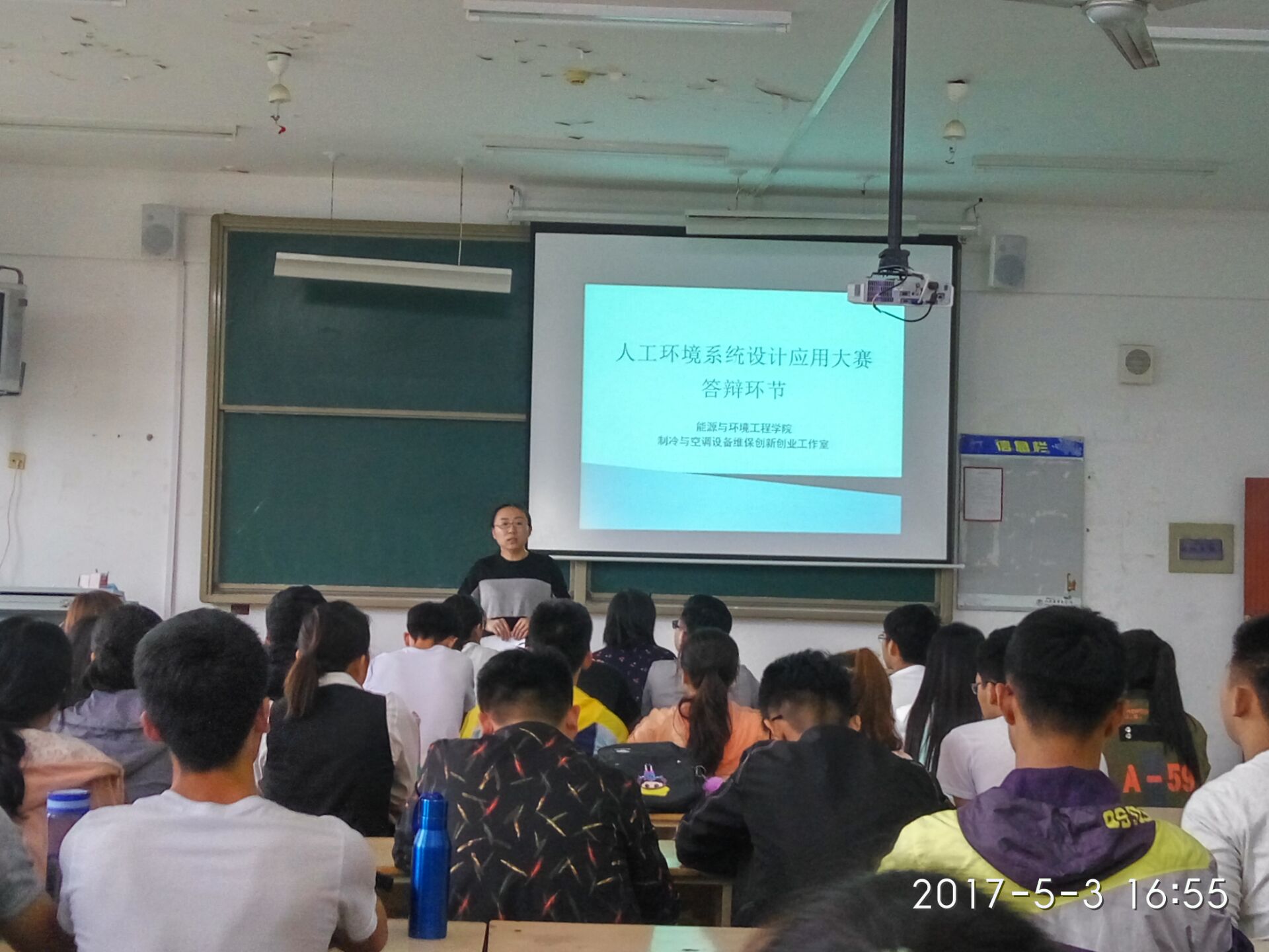 本次大赛于4月17日正式启动,由员工自主组队,自愿报名参加,共有本专科员工63人报名参赛,分成24个参赛队伍。按照大赛要求4月28日截稿,最终共有21个队伍顺利上交设计作品。 5月3日下午16:50,“人工环境系统设计应用大赛预赛答辩”在10号楼603教室举行。能源与环境工程公司经理助理魏丰君、建环教研室主任刘春花、孙项菲老师和张艳秋老师出席了本次答辩会,并担任评委。