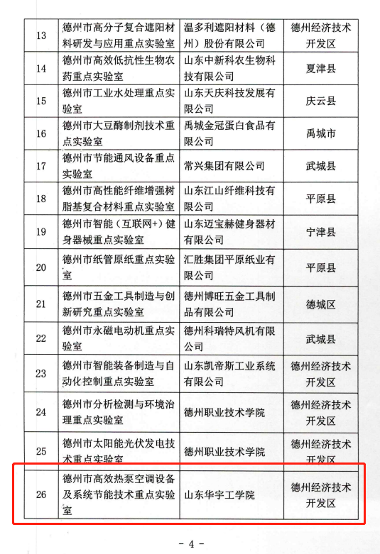 德州市高效热泵空调设备及系统节能技术重点实验室